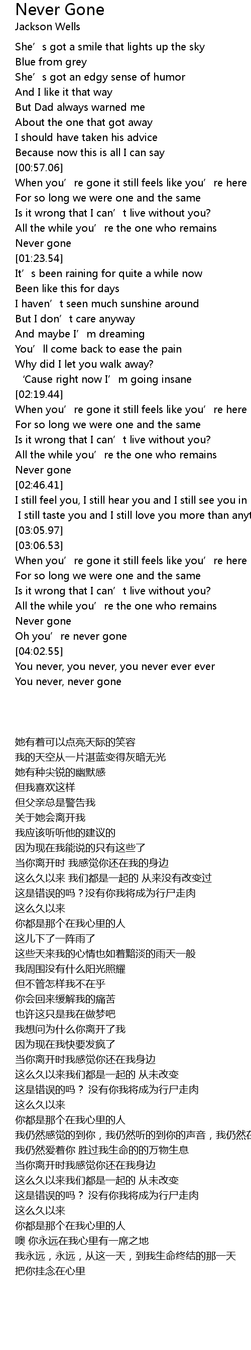 | [02:43.54] | Never gone |