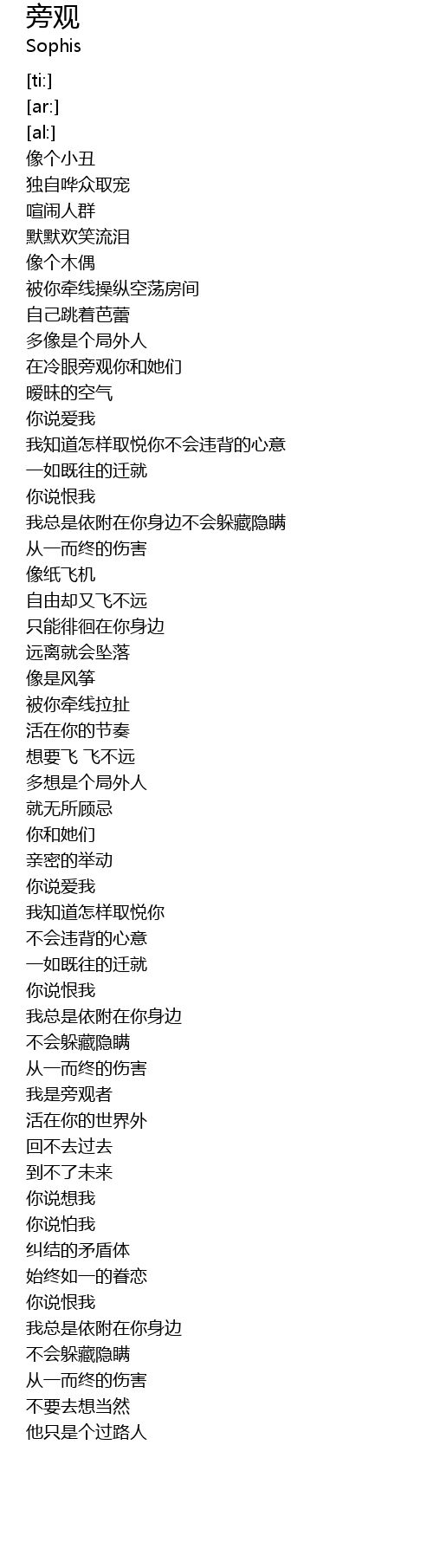 | [02:17.09] | 多想是个局外人 |