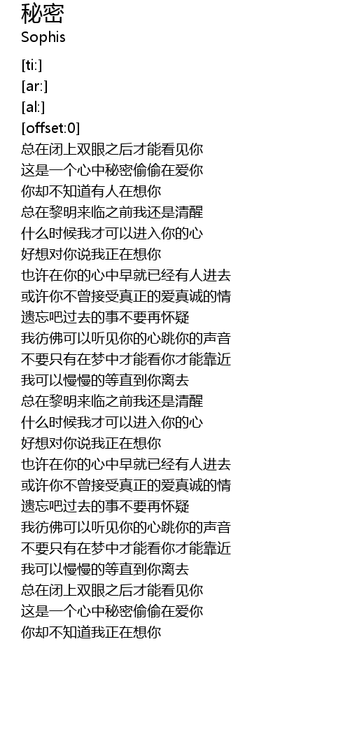 | [00:20.27] | 这是一个心中秘密偷偷在爱你 |