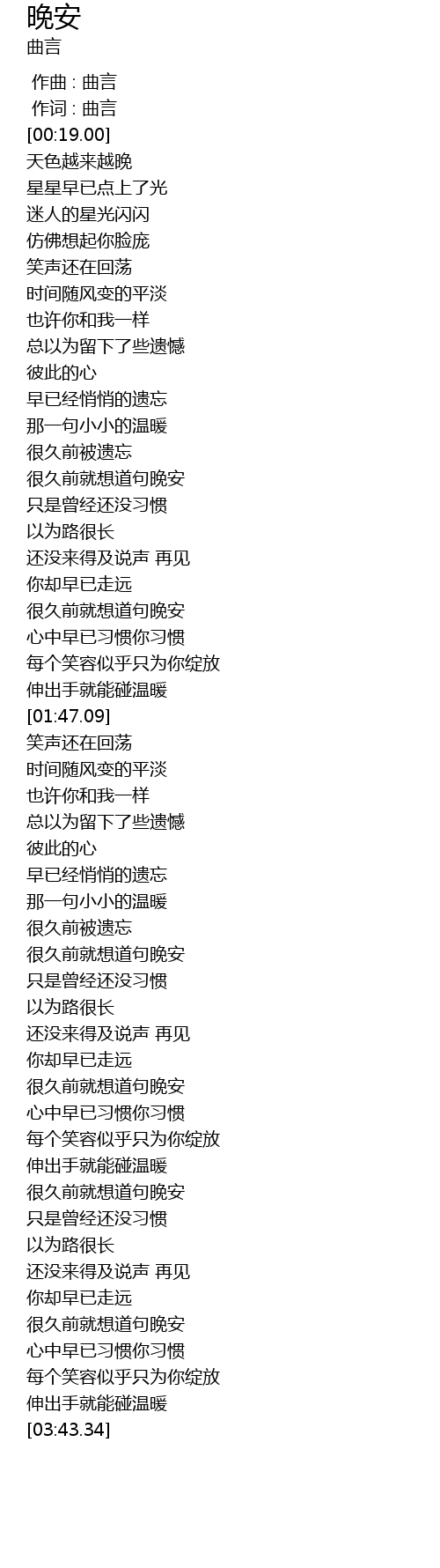 | [03:27.20] | 很久前就想道句晚安 |