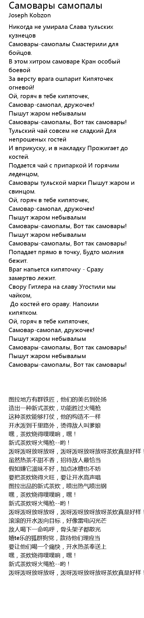 Враг напьется кипяточку - Сразу замертво лежит. |