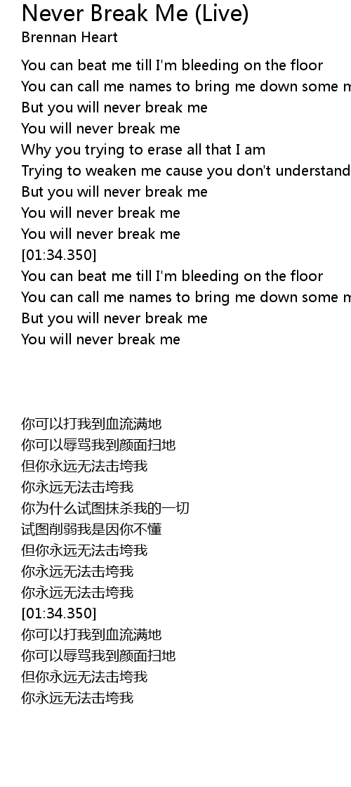 But you will never break me |