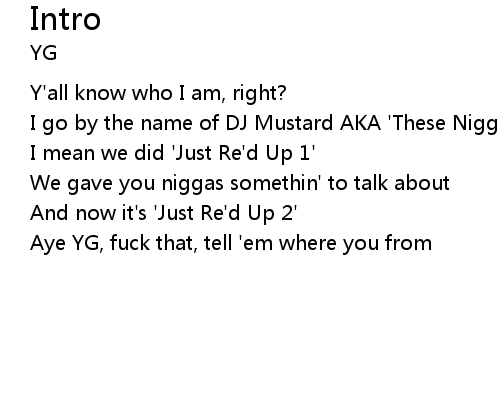 | [00:16.95] | Aye YG, fuck that, tell 'em where you from |