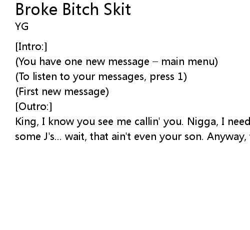 | Song | Broke Bitch Skit |