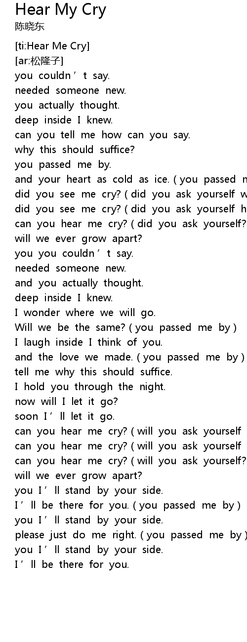 | [ti:Hear Me Cry] | |