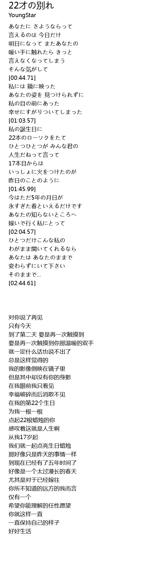 | Song | 22才の別れ |