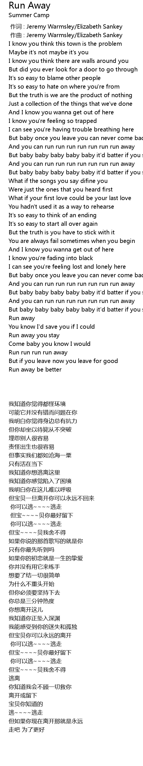 | [00:36.48] | And you can run run run run run run run away |