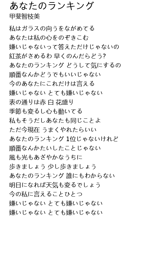 | あなたのランキング 1位じゃないけれど | |