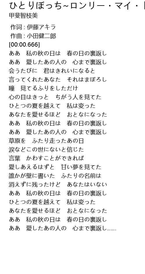 | [00:13.936] | ああ 私の秋の日は 春の日の裏返し |