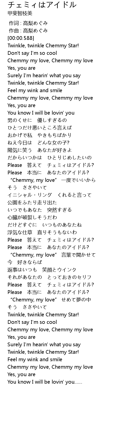 | [02:31.105] | Please 答えて チェミィはアイドル? |
