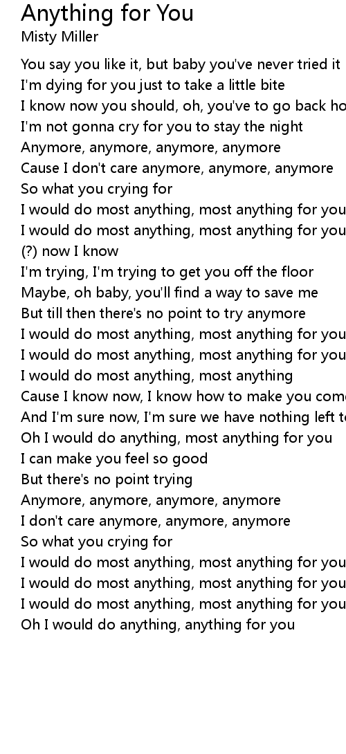 Oh I would do anything, anything for you |
