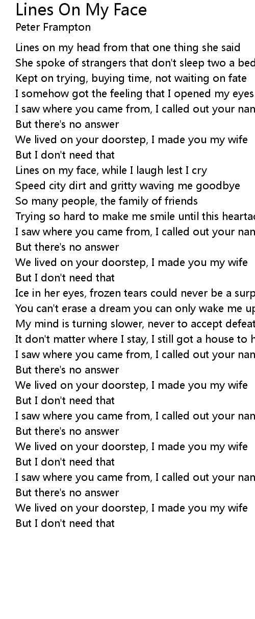 Lines on my face, while I laugh lest I cry |