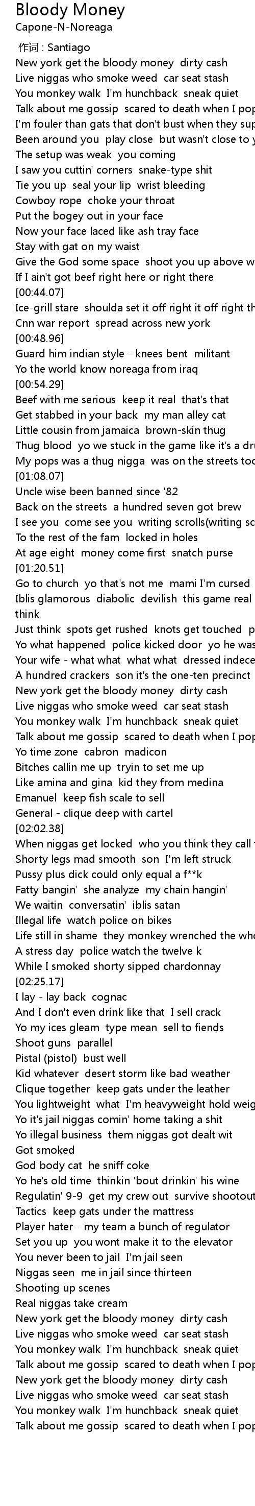 | [03:13.44] | New york get the bloody money dirty cash |