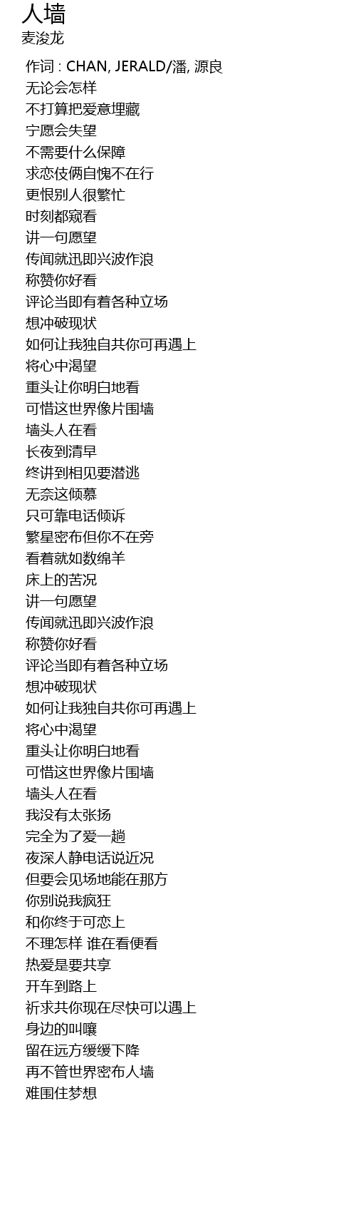 | [00:00.00] | 作词 : CHAN, JERALD/潘, 源良 |
