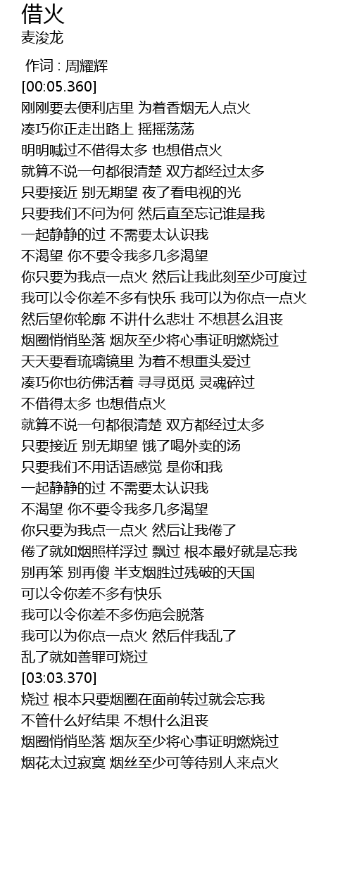 | [01:51.920] | 不借得太多 也想借点火 |