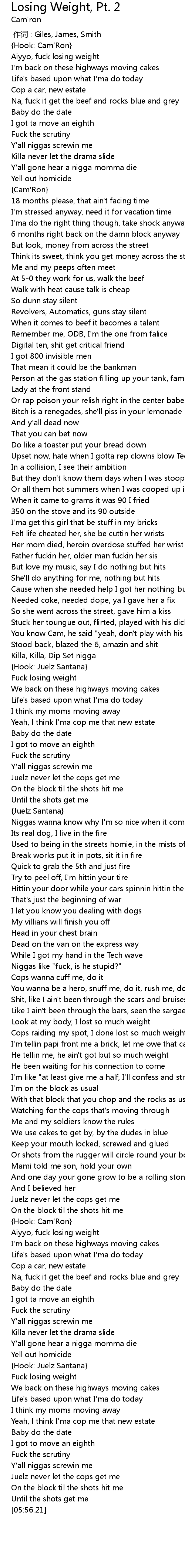 | [05:00.64] | Hook: Cam' Ron |