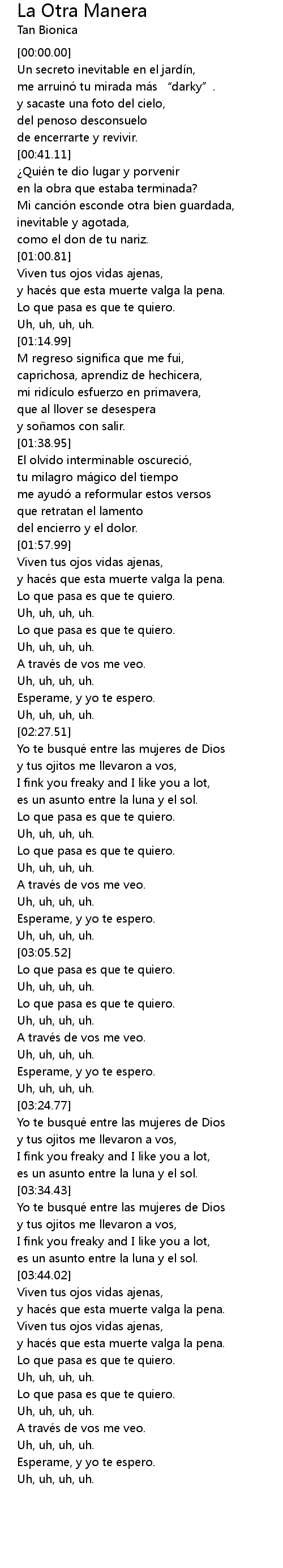 | [02:46.42] | Lo que pasa es que te quiero. |