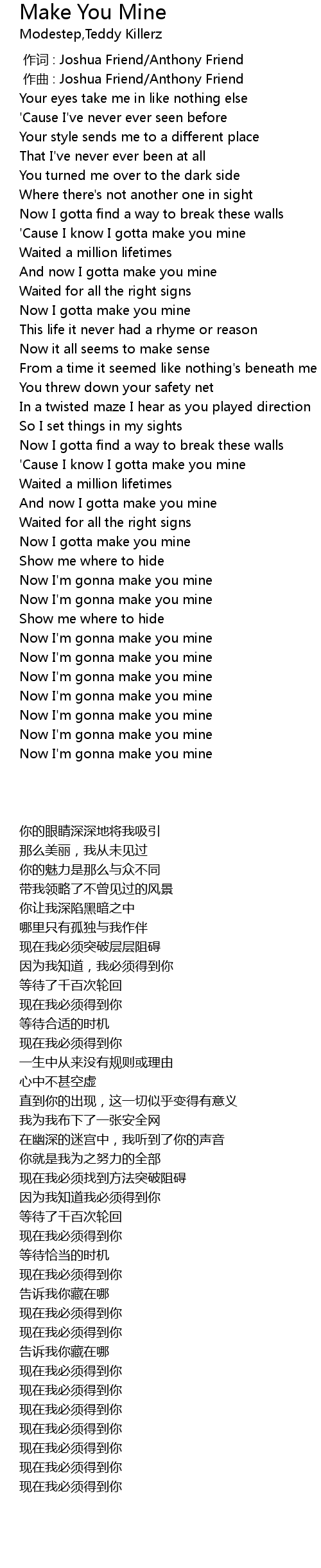 | [01:26.491] | Now I gotta make you mine |