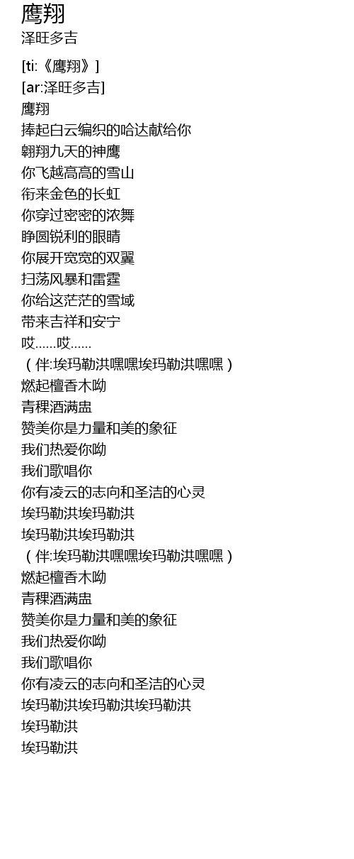 | [02:32.209] | 埃玛勒洪埃玛勒洪 |