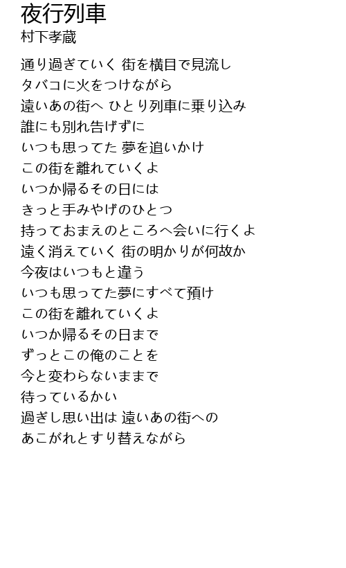 | Song | 夜行列車 |