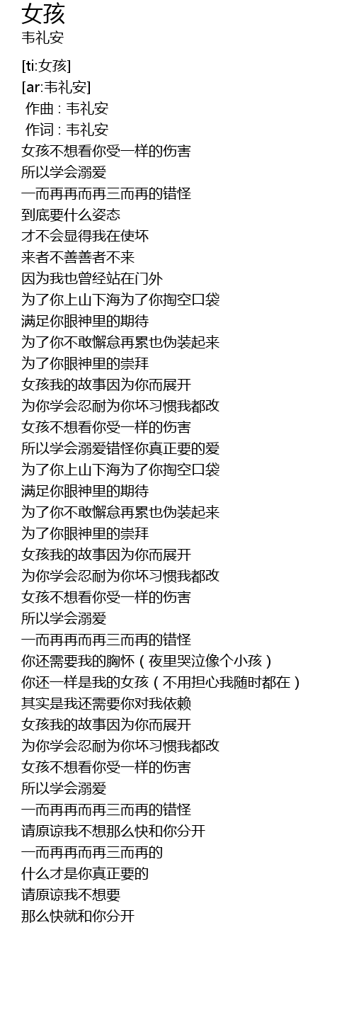 | [00:05.702] | 女孩不想看你受一样的伤害 |