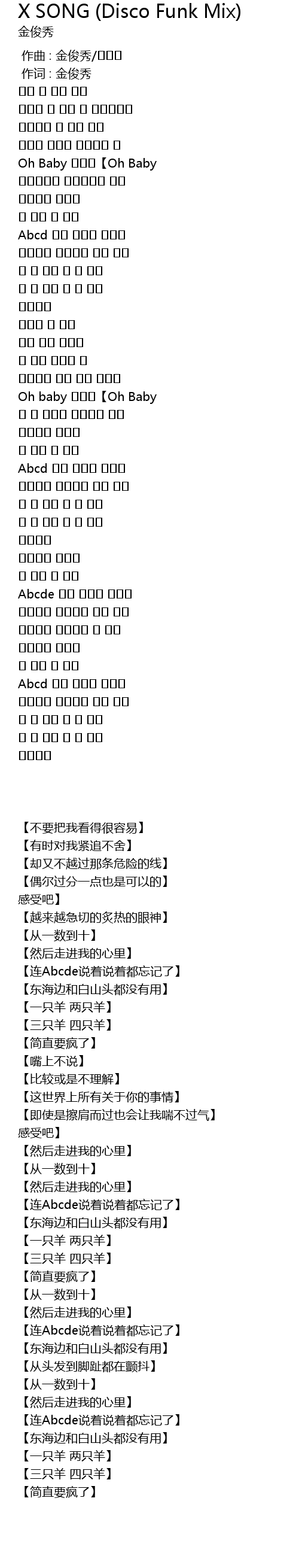 X SONG (Disco Funk Mix) Lyrics