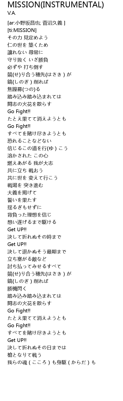| [01:39.33] | 信じるこの道を行(ゆ)こう |
