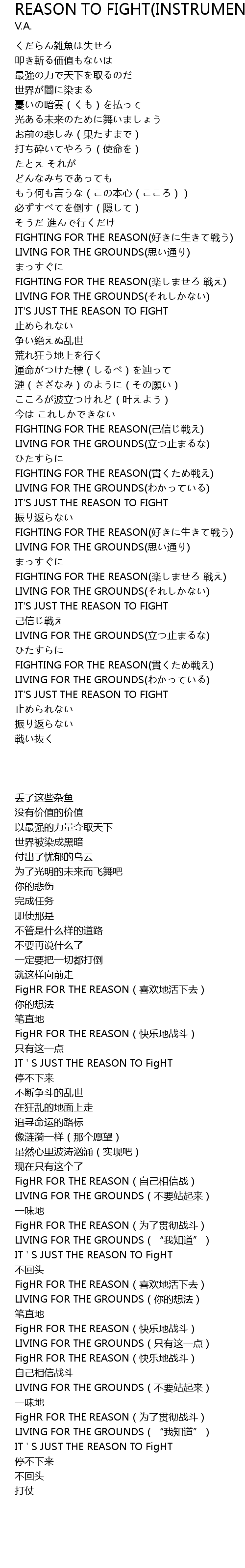| [02:02.79] | FIGHTING FOR THE REASON(楽しませろ 戦え) |