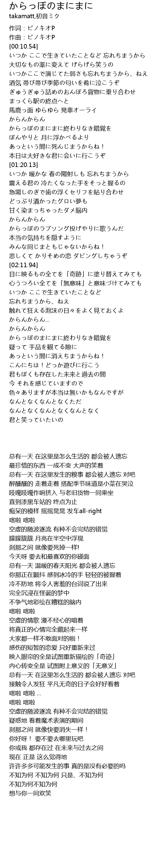 | [02:56.52] | からっぽのまにまに終わりなき錯覚を |
