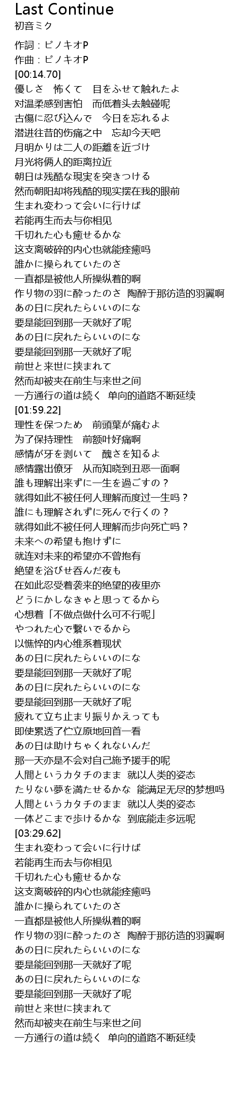 | [00:00.00] | 作詞:ピノキオP |