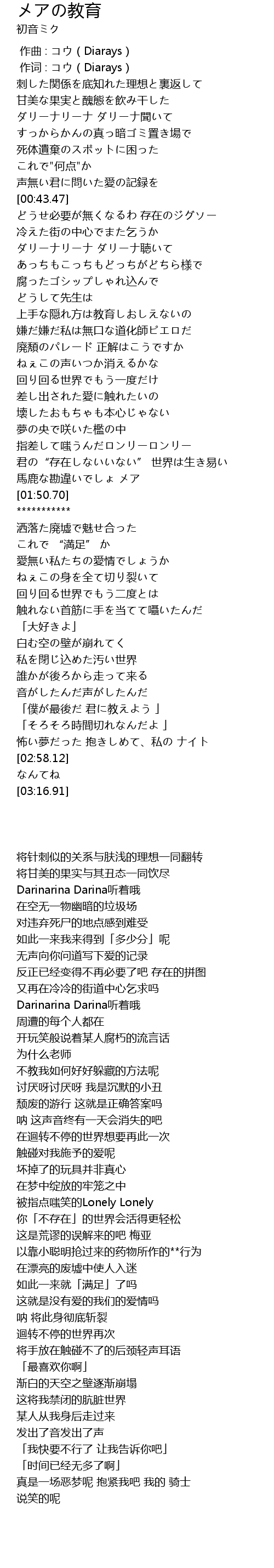 | [00:22.17] | 刺した関係を底知れた理想と裏返して |