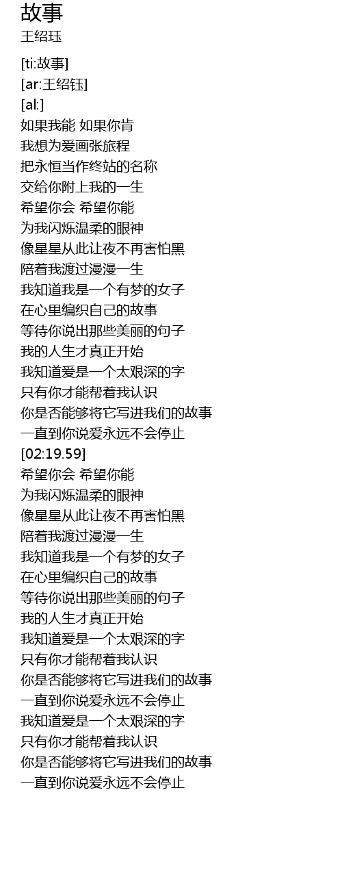 | [01:43.98] | 你是否能够将它写进我们的故事 |