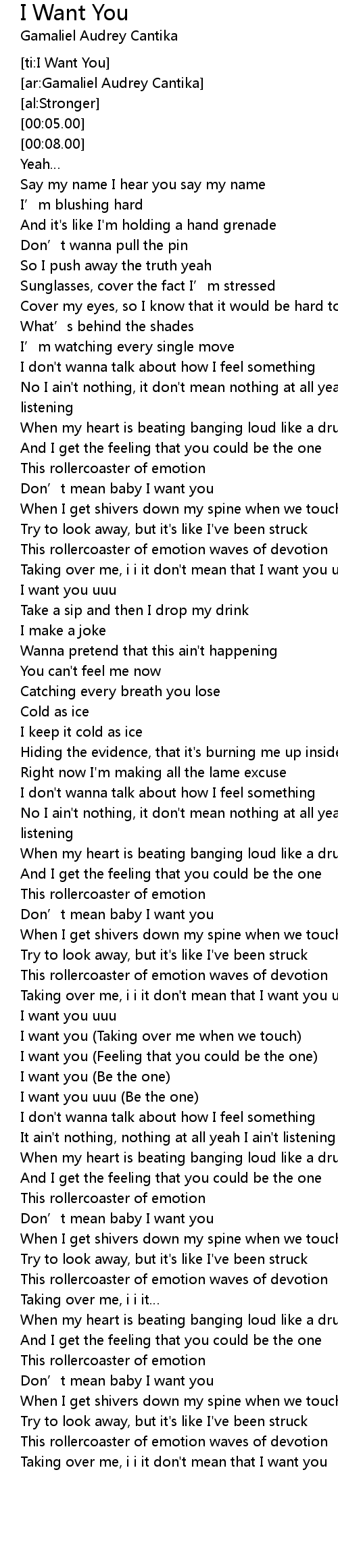 | [01:26.21] | I want you uuu |