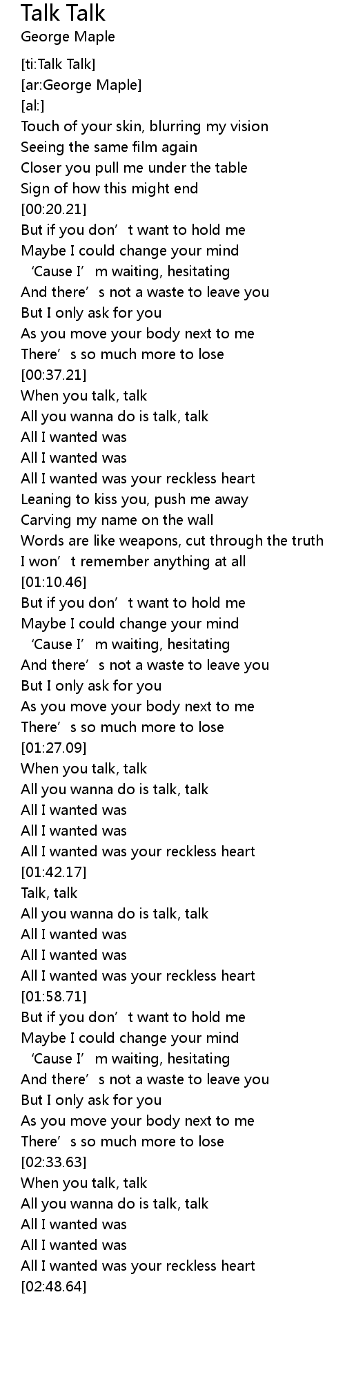 | [00:04.44] | Touch of your skin, blurring my vision |