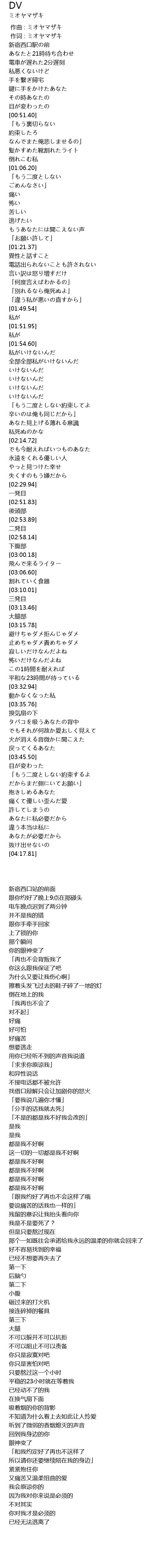 | [00:01.00] | 作词 : ミオヤマザキ |