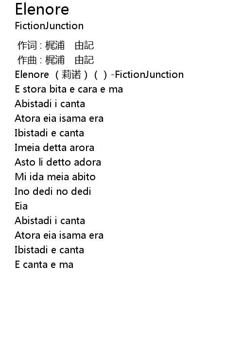 | [00:00.00] | Elenore lì nuò FictionJunction |