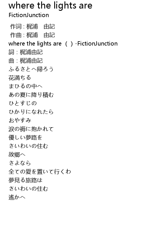 | [00:00.00] | where the lights are ()-FictionJunction |