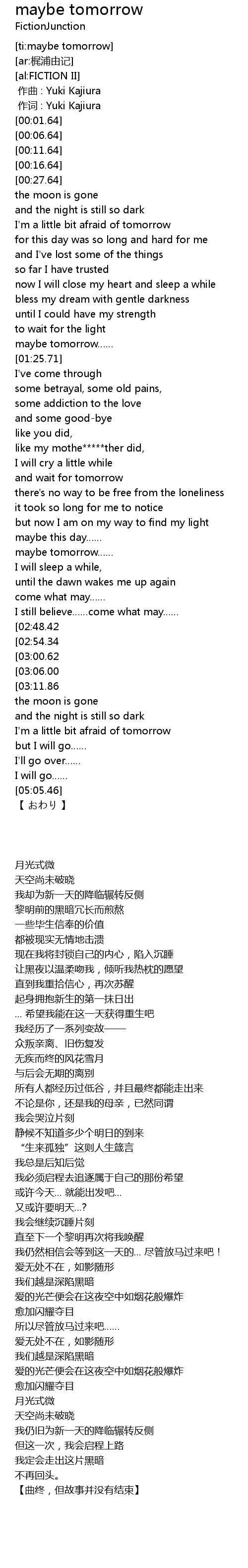 | [00:00.354] | 作词 : Yuki Kajiura |