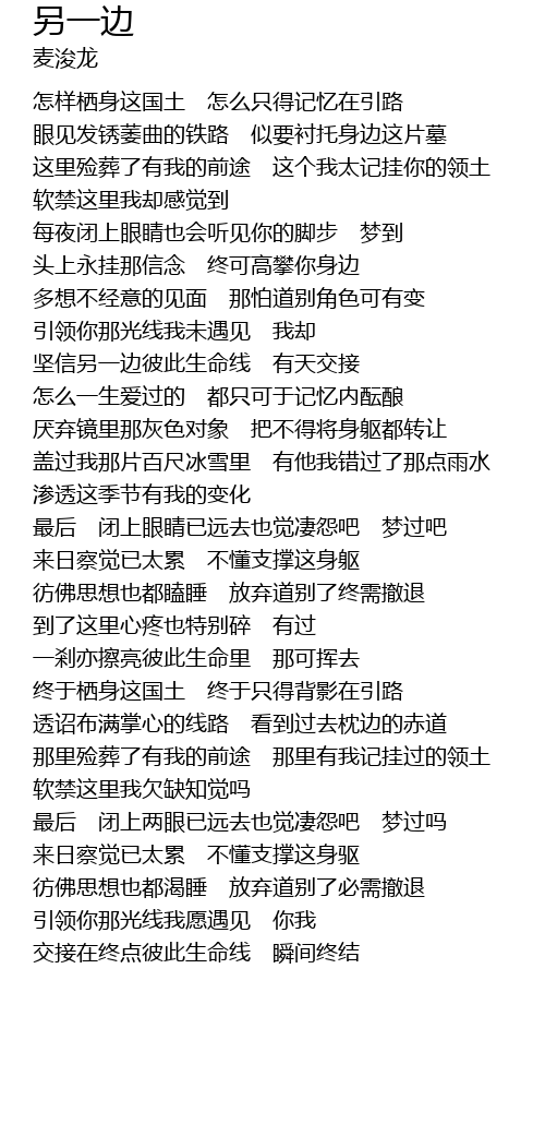 | [00:45.53] | 眼见发锈萎曲的铁路 似要衬托身边这片墓 |