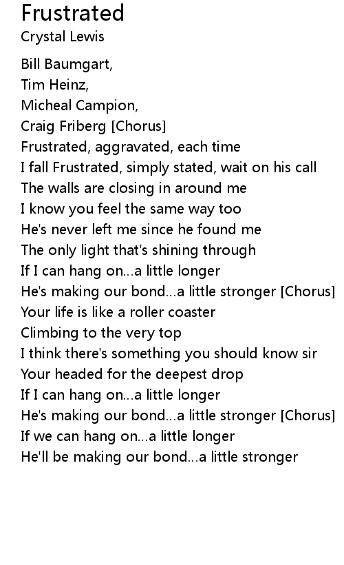 | I fall Frustrated, simply stated, wait on his call | |
