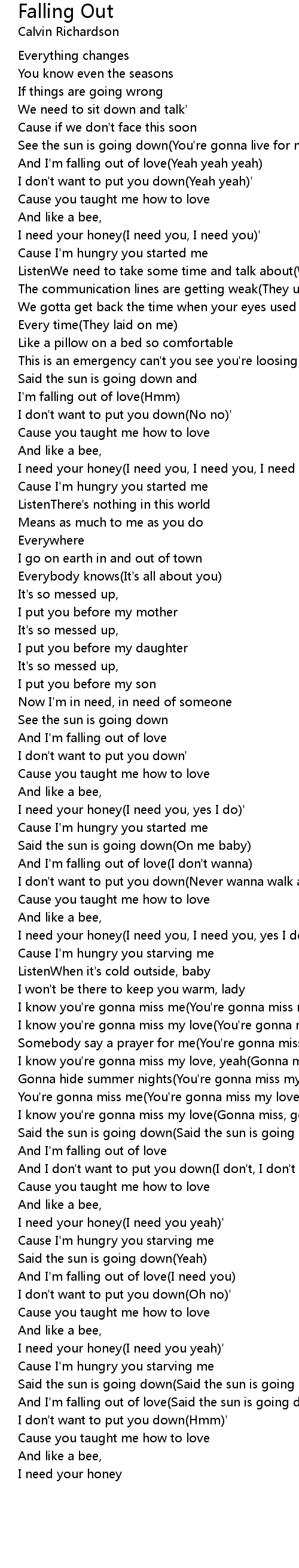And I'm falling out of love(Said the sun is going down) |