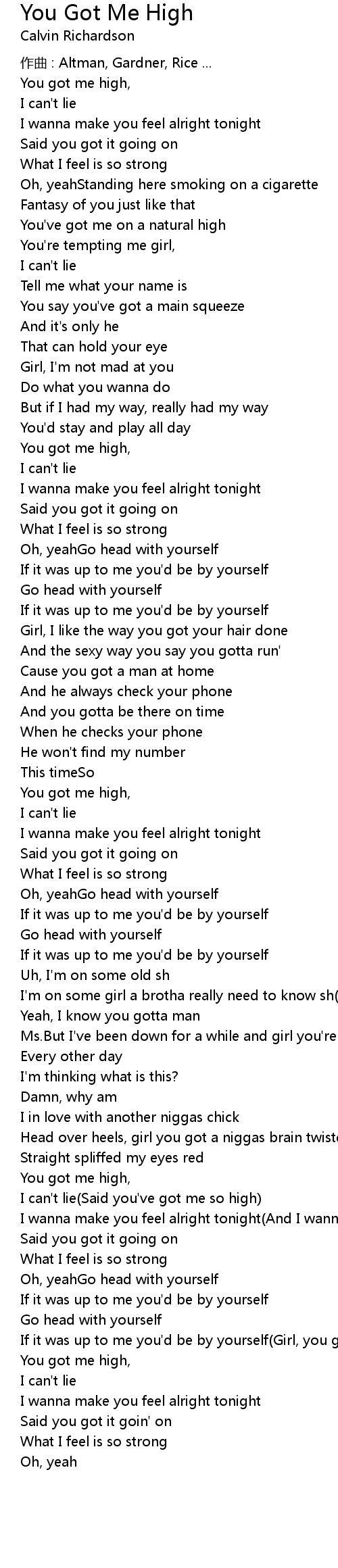 | I can' t lie Said you' ve got me so high | |