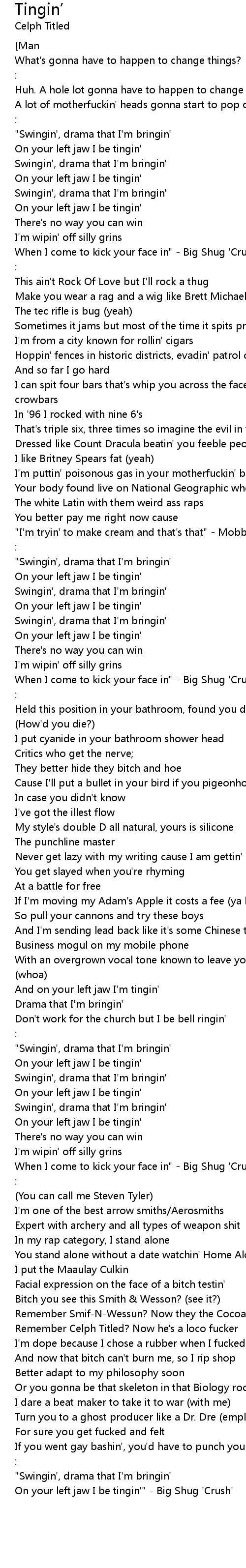 When I come to kick your face in" - Big Shug 'Crush' |