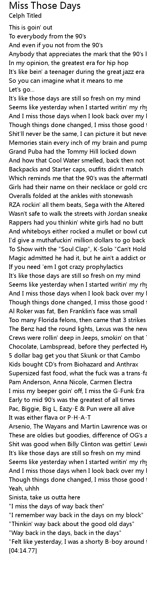 I miss my beeper goin' off, I miss the G-Funk Era |