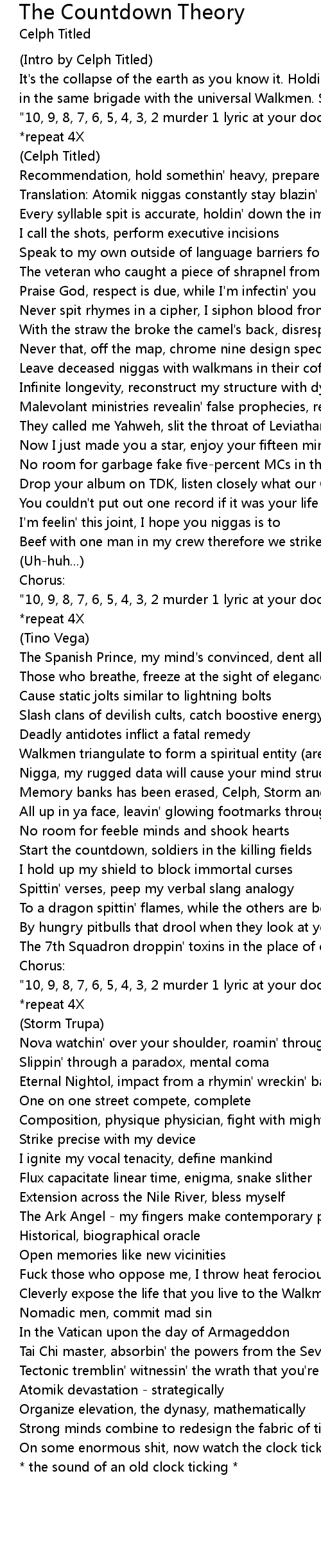 "10, 9, 8, 7, 6, 5, 4, 3, 2 murder 1 lyric at your door" --> Method Man |
