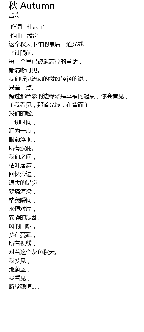 | [00:51.66] | 这个秋天下午的最后一道光线, |