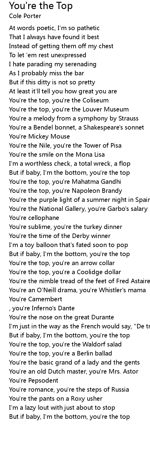 You're the top, you're the Coliseum |