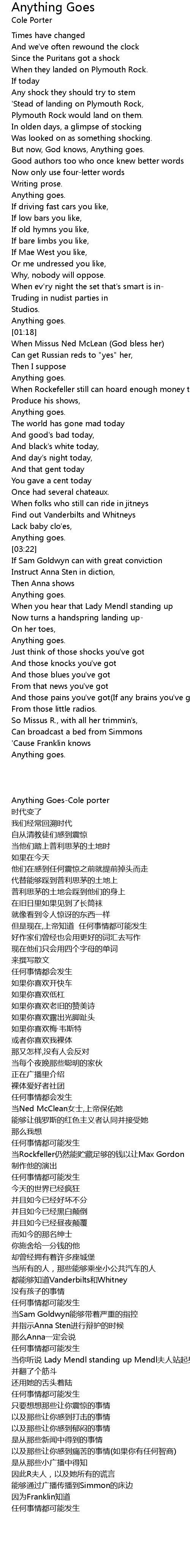 But now, God knows, Anything goes. |