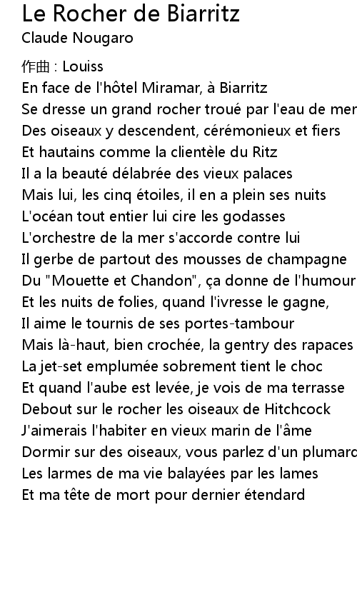 | Song | Le Rocher de Biarritz |