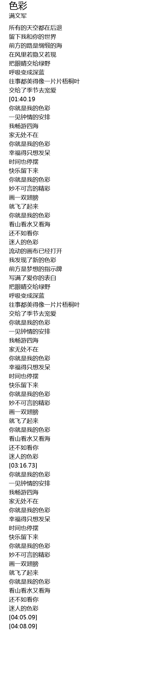 | [03:36.72] | nǐ jiù shì wǒ de sè cǎi |